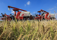 深秋的苏州同里镇北联村,稻浪滚滚。两台外形霸气的收割机,在种粮大户庞金福承包的120亩稻田里来回穿梭。切割、脱粒、装车,收割机一气呵成。望着这番丰收景象,庞金福的脸上挂满了笑容。