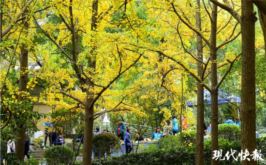 清凉山公园管理处工作人员介绍,今年天气冷得快,银杏比去年同期变色早,预计11月中旬进入最佳观赏期。