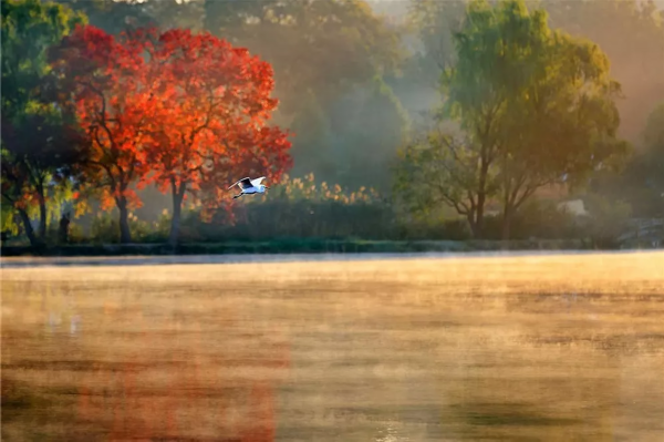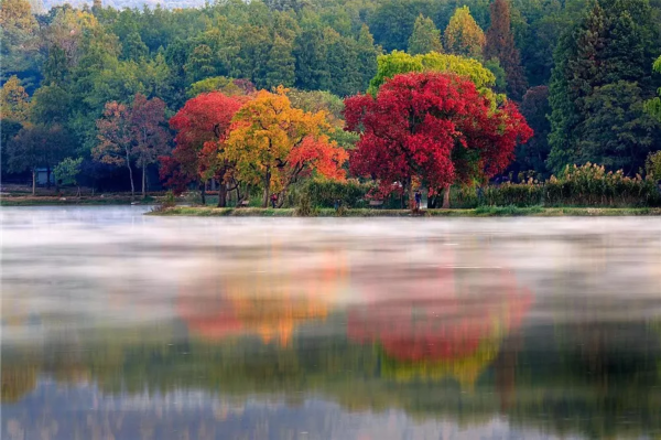 秋天的南京在多雾的黎明溜来,到了温暖的中午又不见了踪影。