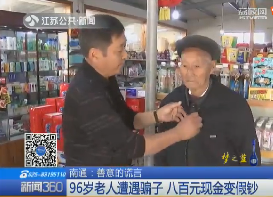 10月30日上午,在通州湾示范区三余镇大乐村,一名96岁的老人在公交车站遇到一名骗子,身上仅有的八百元现金,瞬间真钞变成了假钞。