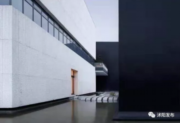 美术馆的主体建筑由建筑大师、浙江大学建筑设计研究院院长董丹申领衔设计,设计理念从沭阳作为“中国书法之乡”入手,风格吸收中国书画的笔、墨、纸、水、砚、印等载体的形态、质感作为形式表现元素,以墨、纸、印的黑、白、红作为建筑颜色元素,以中国书画的虚实、轻重、疏密、开合、聚散等章法关系来布局建筑空间;整体建筑采用族群院落式,单体之间由中式巷道连接,加以景观之水使之厚重而不失灵动;红色主楼有一光厅,仰观厅、院,接纳蓝天白云,置身其间有“闲庭信步”之感,取祥云和书画艺术富于变化之意,故名之曰“云庭”,实为当代文人雅集之所,艺术家作品展示之殿堂。