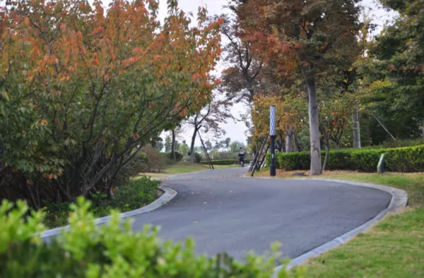 园内层林尽染,眼睛一下子不知道该定格在哪里。有银杏的明黄,有枫叶的殷红,更有野花的五彩斑斓,以及芦苇的洁白无瑕。微风漫过树梢,金黄散落一地,一幅色彩明艳的画卷就这样被自然地勾勒出来。
