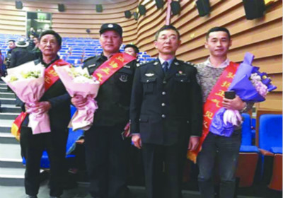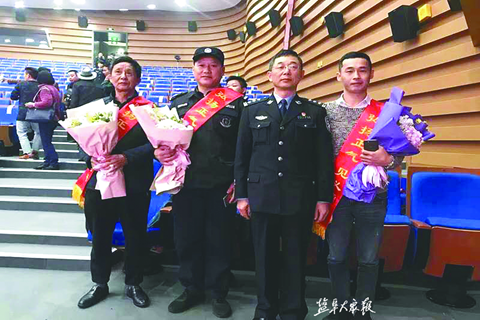 △ 张以逊(左二)在表彰会上的合影。(受访者供图)