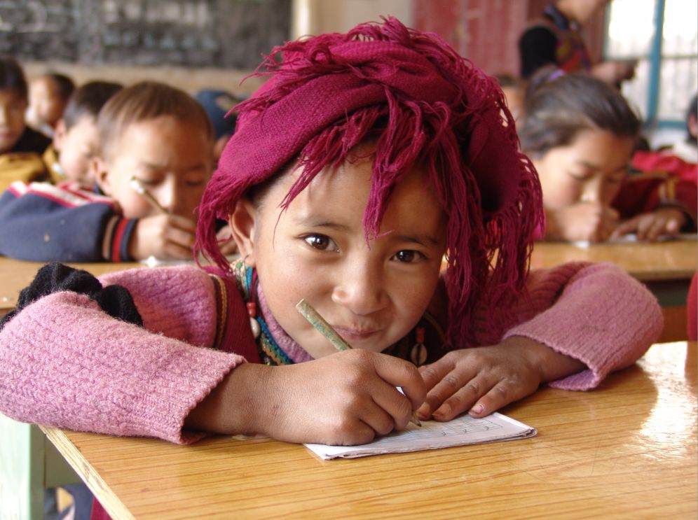 求学的喜悦。虽然用的是掉了皮的铅笔,却掩饰不着求学的喜悦。2007年11月4日,摄于美姑县典礼村小。