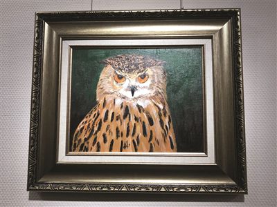 朱子愉学画六年来,已学习了素描、水粉、水彩、油画以及国画等画种,参加了二十余次户外写生实践活动,目前已拥有12本个人画册,同时取得了素描、水粉和国画三个画种的十级证书。“我最得意的作品当属《猫头鹰》(如图)和《静待花开》了!”作品展现场,朱子愉高兴地向参观的访客介绍自己的作品。