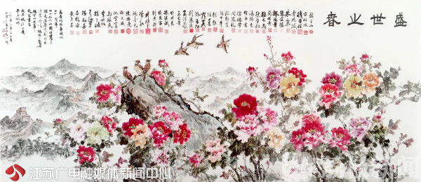 特别是魏金山、方祖岐、钱国梁、雷鸣球、朱文泉、张宗德、郭锡章、兰保景、赵太忠、熊自仁、潘瑞吉、徐承云、徐德学、周德礼等40位共和国将军挥毫泼墨、抒发豪情、讴歌盛世,集体创作以长城为背景、40朵“国花”和太平鸟为主要内容的大型国画《盛世之春》。画面大气磅礴、意境深远,体现了老将军们的家国情怀和使命担当。