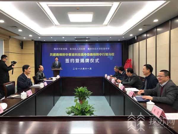 今天(11月28日)上午,南京市教育局、秦淮区人民政府、南京师范大学附属中学三方合作、市区共建南师附中秦淮科技高中、南师附中行知分校签约暨揭牌仪式正式举行。两所新校均为公办校,将极大改变秦淮优质教育资源西密东疏的现状。