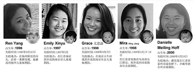 1992年,女婴潘甜甜被人遗弃在扬州一座公园内。送到扬州市儿童福利院后,她被一位美国女士领养。长大后的潘甜甜考取了哈佛大学政治系,如今供职于美国一家研究所。有着相似经历的,还有美国华裔女孩杨思浓。