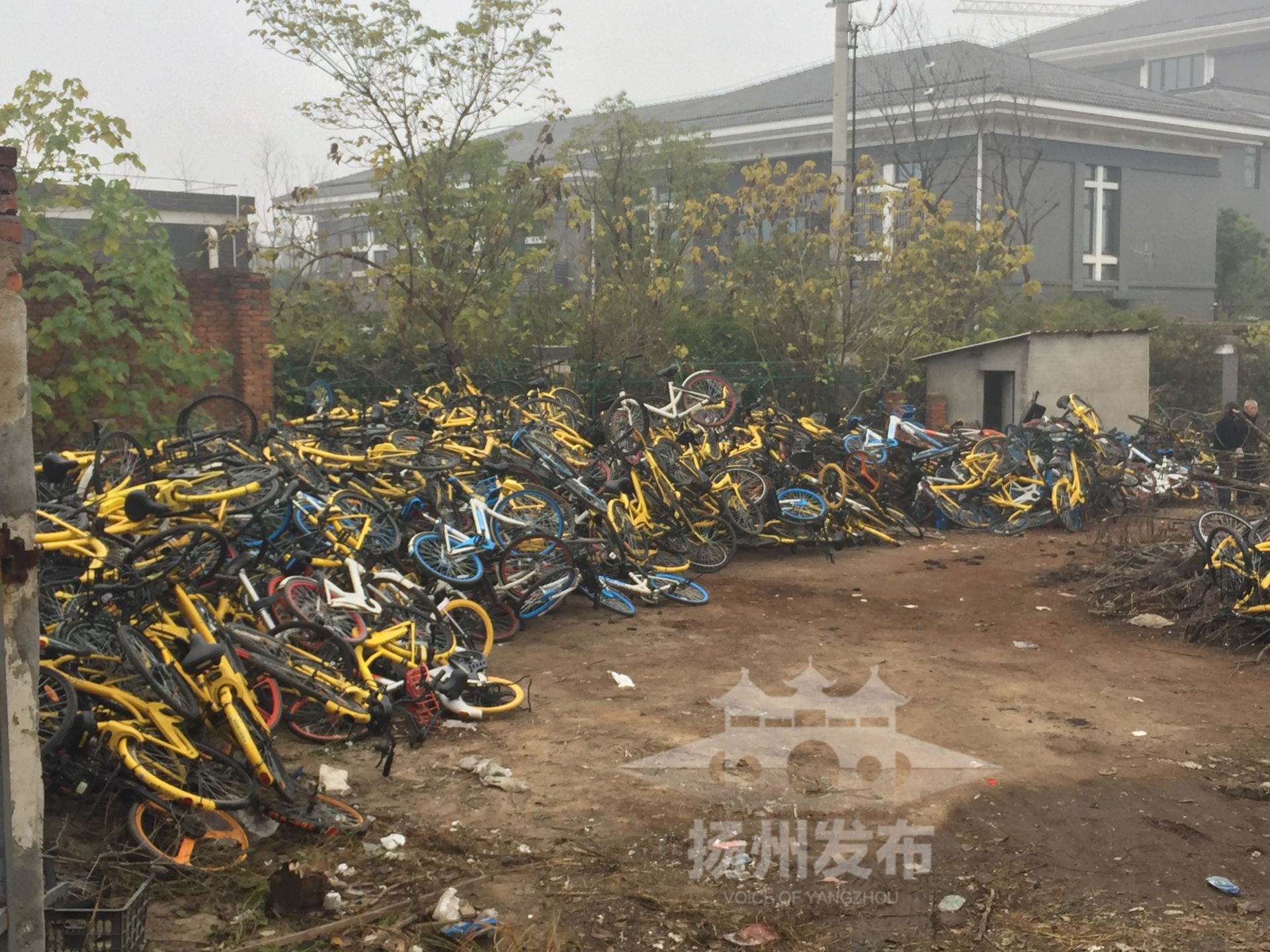 然而,这一规定并没有真正去实施。“瘦西湖风景名胜区是扬州的脸面,绝不允许单车‘恣意妄为’,必须进行清拖!”景区城管局一位负责人告诉记者,为了管好单车,3个月前,他们在辖区划定了80多个单车停放点,专供单车停放,一定程度上减少了乱停现象。几天前开始,他们又对乱停单车升级了管理措施,对那些停放在点外的单车,在通知30分钟(核心区15分钟)后仍不能处置好的,安排专业的物业公司进行清拖,几天时间已清拖了1000多辆。28日上午,记者在江平东路丁魏垃圾中转站东侧空地看到,推土机正在将散落堆放的树枝归集起来,为清拖来的单车“腾仓”。这里是景区清拖单车的临时堆放地,空地上堆放了大量的单车。据悉,前几天,景区每天的清拖量有100多辆,28日有300多辆,总量已超千辆。