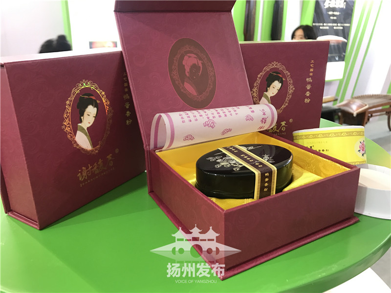 扬州展区整体设计简洁明亮,色调以绿色和白色为主,十分清新自然。展区内,七家参展单位一字排开,都拿出了自己的“看家本领”。