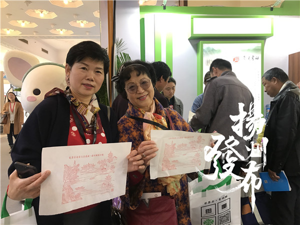 雕版印刷体验区,上海市民高女士和沈女士手上都拿了一张刚刚印刷好的瘦西湖风景图。看着年轻技师慢慢将木板上的文字轮廓雕刻出来,她们由衷赞叹:“小姑娘不容易,年纪轻轻就能学到这么优秀的雕刻技术,这是很难得的,这说明扬州的文化传承做得非常好。”