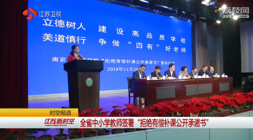 据我苏网 根据省有关部门的统一部署,昨天起,全省中小学教师签署《拒绝有偿补课公开承诺书》,共同营造风清气正的育人环境。《承诺书》共有七项内容,包括不在住所或其他场地开展有偿补课;不在校外培训机构参加有偿补课或担任任何职务;不参加其他教师、家长、家长委员会等组织的有偿补课;不到居住地以外开展异地有偿补课等。详情>>