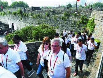 今年名城会期间,100多位嘉宾登上中华门游览城墙。