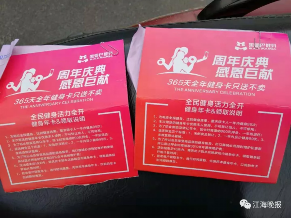 “今年年初,有黑曼巴健身公司的小伙子、小姑娘上门推销这家公司的会员卡,条件很优惠,让利幅度也蛮大。于是,我就动了心,为全家办了一张为期4年的‘家庭健身卡’。”会员谷女士告诉记者,“原价6000多元的套卡优惠后,只要4000多元。没想到,我们家办的这张卡一次还没用,就摊上了这事,现在真是肠子都悔青了!”