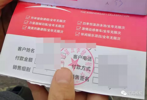 张先生拿出一份名为“黑曼巴健身会员服务协议”的粉红色复印件,指着上面的文字介绍:“和客服人员洽谈后,我按照他们的要求先交了50元定金,办会员卡后充值了2300元,享受缴一年钱、送一年活动时间的优惠待遇。可是,你看看,这一年时间才刚刚要到。这店就关门大吉了,这不是坑人又是什么?”