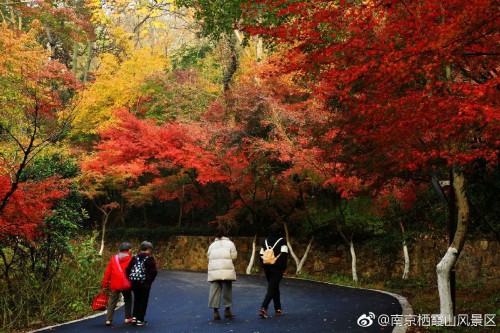 雨花台的红枫基本都分布在景区西侧,沿路三三两两总能看到几颗枫树,另外景区北门右拐的枫叶林,也正红的五彩斑斓!