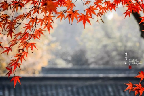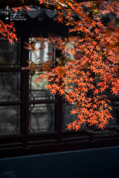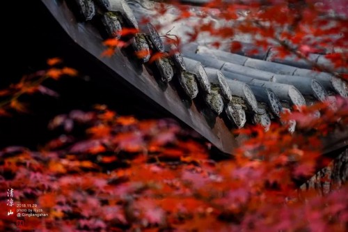 好多人都只知道到清凉山的银杏谷赏银杏,殊不知这里山中凉亭旁的红枫也别有风趣。白墙黛瓦有红枫点缀,使这里的风景更添几分禅意。