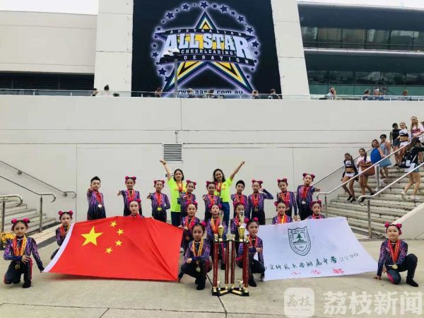 这段小视频是南师附中江宁分校小学部在2018年澳大利亚啦啦操公开赛上的精彩表演,啦啦操队教练赵凯佩回忆,当时现场观众的欢呼声和掌声不断。最终,在参赛的1700支队伍中,南师附中江宁分校的运动员以强劲的实力夺得儿童组集体花球第一名、小学组集体花球第一名和全场最佳表现奖的好成绩,并获得冠军战袍一件。而全场只有两支队伍获此殊荣。