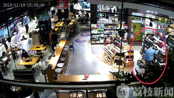 原来,11月16日的时候,超市工作人员发现少了一瓶价值598元的高档红酒。店内监控显示当天只有一名身穿蓝色上衣的的男子购买过一瓶红酒,并且是通过超市门口处的自助收银机进行买单。可奇怪的是,超市方调出的收银记录却显示这名男子支付的是一瓶价值39元红酒的钱。正当超市工作人员疑惑不解时,11月19日傍晚,这名男子又出现在超市,同样拿了一瓶598元的红酒到自助区结账。