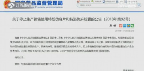 国家药监局发布《关于停止生产销售使用特酚伪麻片和特洛伪麻胶囊的公告》中表示,特酚伪麻片和特洛伪麻胶囊存在心脏毒性不良反应,使用风险大于获益,决定停止特酚伪麻片和特洛伪麻胶囊在我国的生产、销售和使用,撤销相关药品批准证明文件。