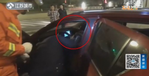 12月2日凌晨4点,有市民发现一辆轿车停在盐城街头的十字路口,车子处于发动状态,但女司机怎么喊都喊不醒。
