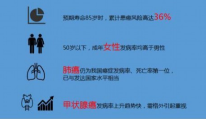 如果说,一个人活到85岁,那么他的累计患癌风险高达36%;