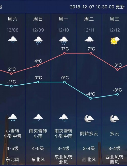 白天沿江和苏南地区阴有小雪,其它地区多云到阴,