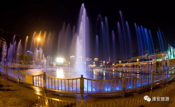 大运河广场的喷泉开始绚烂