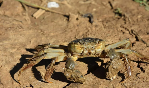 洪泽湖大闸蟹从泥潭里探出了脑袋