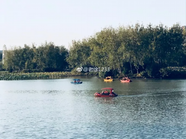 钵池山公园的游船开到了湖中央