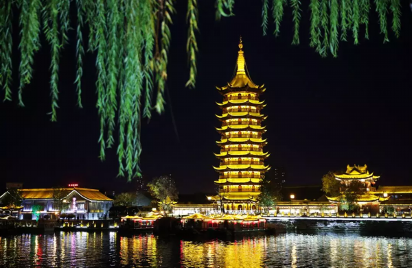 国师塔的夜景成了一幅画