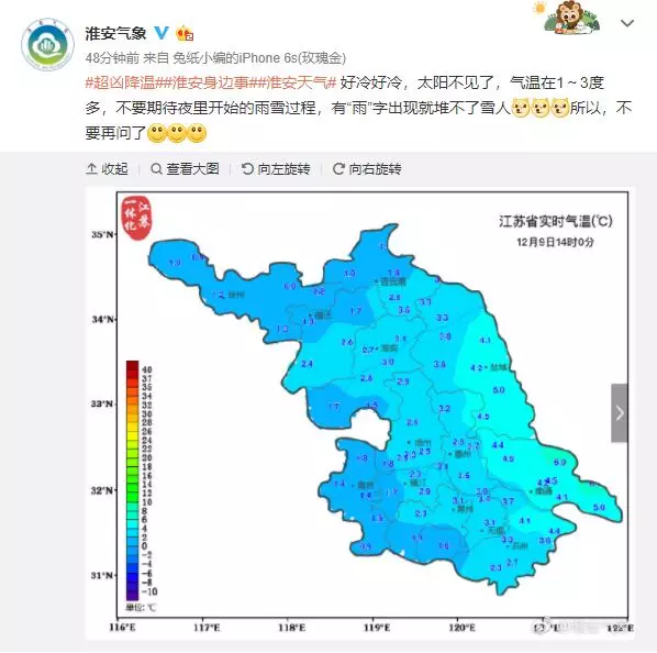 气象专家指出,随着暖湿气流近日北上,全国的雨雪分界线有所北抬,淮安今年的初雪很可能是以雨夹雪的形式出现的,雪花落到地面上就很快融化,形成“千树万树梨花开”的景观可能会比较难。