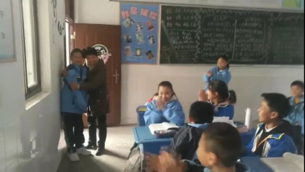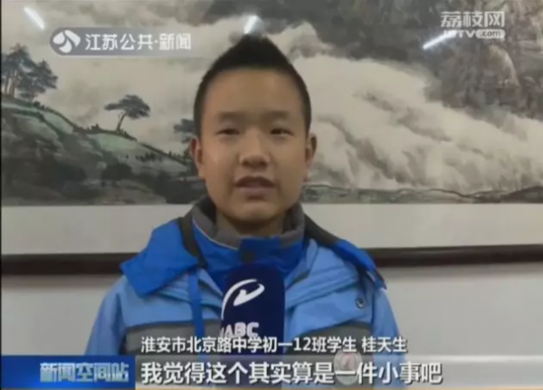 凭着在闲聊中得知的,孩子在市区北京路中学读初一这个仅有的信息,陈锦芳来到了北京路中学。在学校老师的陪同下,陈锦芳在每一个班级中仔细找寻这名学生,直到他们走进第14个班级,找到了让座的男孩——初一12班的学生桂天生。