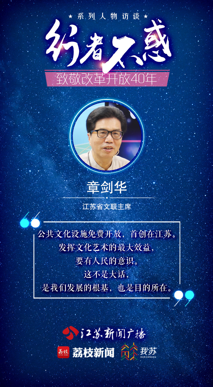 章剑华:可以这样说,我到省里正好工作是30年。三个十年,十年秘书,十年广电,十年文化,也可以说是亲身经历了我们江苏改革开放的过程,同时也亲身参与了我们江苏文化建设的全过程。