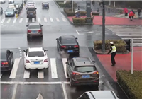 “当时早高峰刚刚结束,天气还不是太好,很快就飘起了雪花,而且越下越大。”当天上午9时20分左右,泗阳县公安局交警大队城东中队辅警张伟正在上海路与北京路交叉路口执勤,因雪下得比较急,他没来得及下去换雨具,“我安排同事先下去换雨具了,下雪了,路面比较湿滑,担心发生老人摔倒等一些交通事故,我就在街头冒雨执勤。”