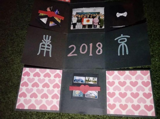 “表白盒子”里有各种精巧的手工作品,同学们通过贴纸、艺术字体、插画、干花、照片等记录改革开放四十年来南京的时代变迁。