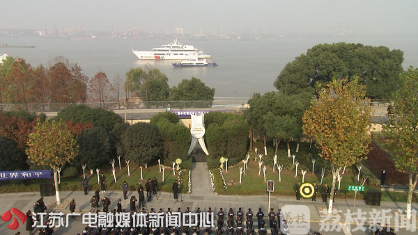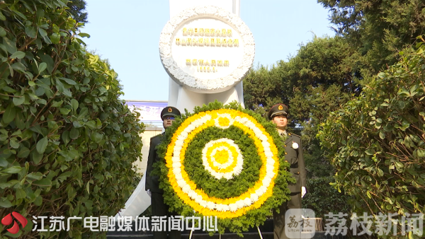 在侵华日军南京大屠杀中山码头遇难同胞丛葬地,子弟兵代表向侵华日军南京大屠杀中山码头遇难同胞纪念碑敬献了花圈,参与纪念活动的各界代表,将手中的鲜花放置在纪念碑前,让鲜花带去对逝者的哀思和对和平的祈愿。