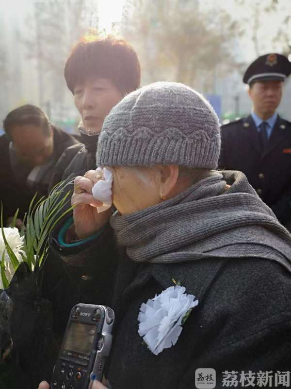 南京大屠杀幸存者94岁高龄的甄爱梅老人,在儿孙们的搀扶下,在中山码头遇难同胞纪念碑前放下一支菊花,诉说起自己的父亲、叔叔、姑姑惨遭日本侵略者杀害,老人声音哽咽,却再也流不出眼泪,老人的儿媳刘同顺说:“我问她:妈,今天12月13号了,要不要去参加悼念活动?她说去参加!毫无疑问,我们每年都带着我婆婆来江边祭奠,告诉我们的后人一定不要忘记这段历史,珍惜今天的幸福生活,珍爱和平。”