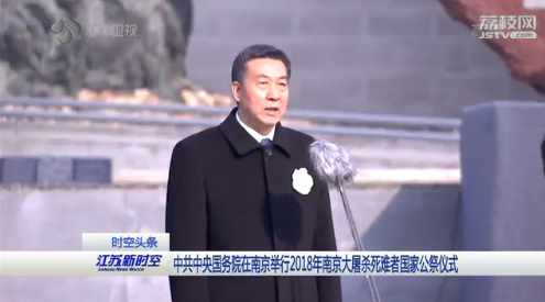 中共中央、国务院今天上午在南京隆重举行2018年南京大屠杀死难者国家公祭仪式。中共中央政治局委员、全国人大常委会副委员长王晨出席并讲话。