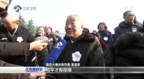 南京大屠杀幸存者葛道荣说,只有国家强大了,和平才有保障,仇恨可以淡忘,历史一定要铭记,我们应该和全世界的人民团结起来,平息一切战争,希望今后世界上的母亲不再流泪,世界上的儿童们能过上和平幸福美满的生活。