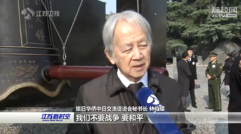旅日华侨、中日交流促进会秘书长林伯耀说,我们不要战争,要和平。我们中日两国人民,一定要对历史正确地对待,未来子子孙孙友好下去。