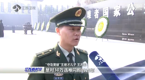 "守岛英雄"王继才儿子王志国说,三声和平钟声,是对30万遇难同胞的告慰,也是寄予了咱们中国人民对于和平的期望,同样对于咱们军人来讲,更是一种警醒,要安而不忘危,守护这份来之不易的和平。
