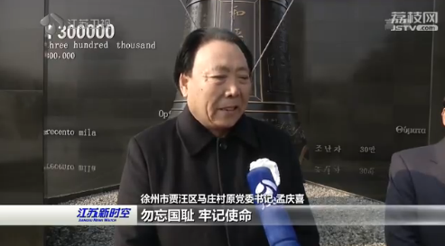 徐州市贾汪区马庄村原党委书记孟庆喜表示,前事之师、后事不忘、勿忘国耻、牢记使命。虽然说,我现在已经是退休了,但是退职不能退责。还要为我们的乡村振兴,为中华民族的伟大复兴事业做出新的更大贡献。