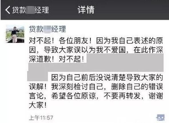 这份不当言论引发一片谴责。中午时分,顾某某本人在朋友圈道歉并解释。
