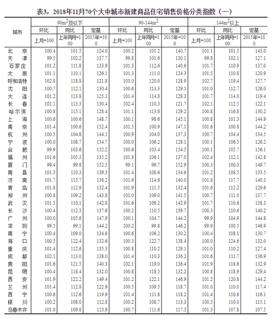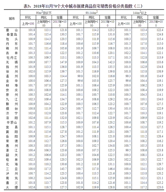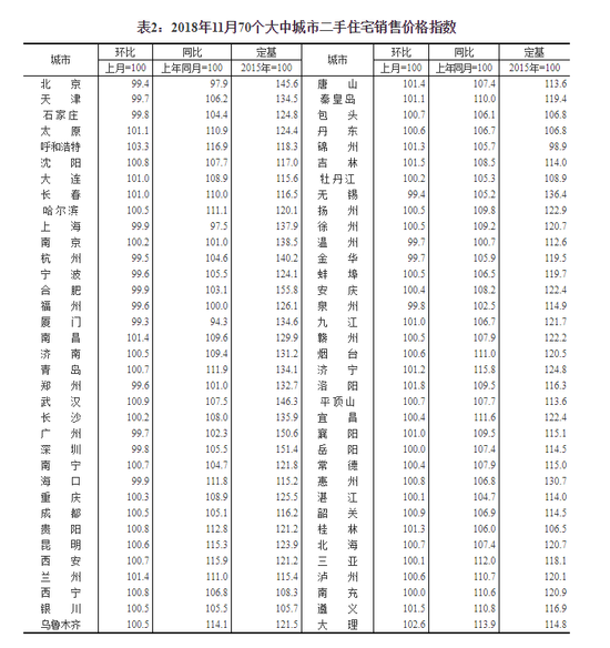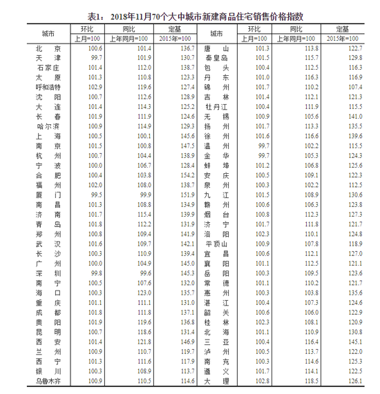 附件:2018年11月份70个大中城市商品住宅销售价格变动情况