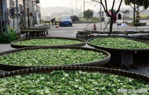 想要制作美味的雪里蕻咸菜,必须将收割的菜晒两三日,等水分差不多收干,再洗净切碎,加上盐巴用力地揉搓。“以前腌咸菜加盐比现在多,现在大家讲究健康饮食,提倡清淡,所以五斤菜只放二两盐。”之后,将揉好的雪里蕻放进老瓦罐、瓮头或是土缸内,压上一桶水或是石墩等重物,经过一周的耐心等待,就成了爽口的美味。