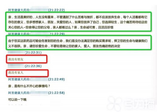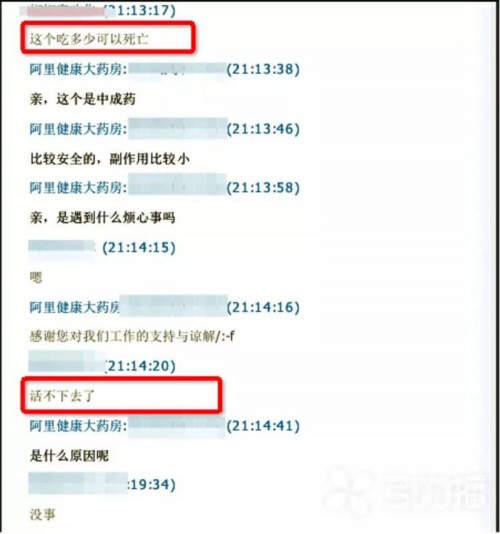 报警人是某药品网购平台上的一名客服人员,事发当晚,一名消费者在简单咨询了购买药物的情况后直接问道:“这个药吃多少可以导致死亡?”客服人员赶紧回复:“这个药属于中成药,副作用比较小,亲,是遇到烦心事了吗?”对方回复过来一条消息:“嗯,活不下去了,一次吃一盒会怎样?”