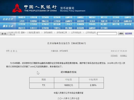 央行公告称,17日以利率招标方式开展了1600亿元逆回购操作,期限7天,利率2.55%。因今日无央行逆回购或MLF等到期,故全部实现净投放。