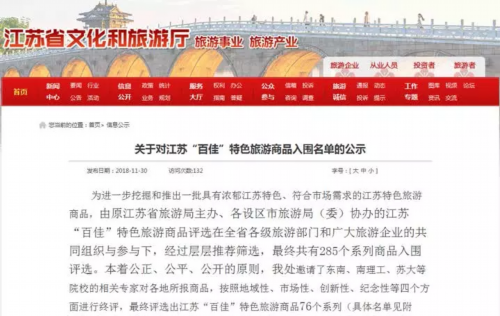 江苏“百佳”特色旅游商品名单入围名单