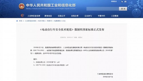 小编查询国家工信部官网发现,2018年5月17日,《电动自行车安全技术规范》强制性国家标准正式发布,新标准规定,电动自行车应当符合下列要求:具有脚踏骑行能力:具有电驱动或和电助动功能;电驱动行驶时,最高设计车速不超过25km/h;电助动行驶时,车速超过25km/h,电动机不得提供动力输出;装配完整的电动自行车的整车质量小于或等于55kg;蓄电池标称电压小于或等于48V;电动机额定连续输出功率小于或等于400W。